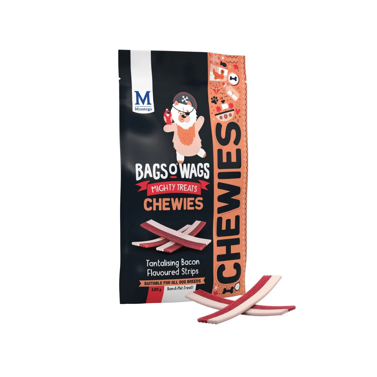 Bags o' Wags Chewies – Bacon Flavoured Strips 120g
