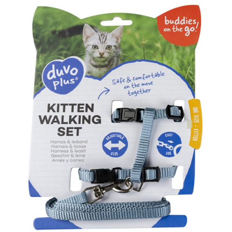 Duvo+ Kitten Walking Set Uni Blue - Harness & Leash - 15-25cm / 125cm