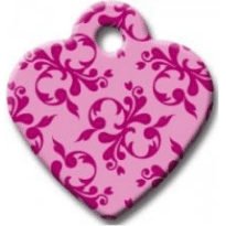 I.D Tag Small Heart Pink Scroll 2.5x2.7cm