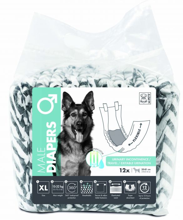 M -PETS DIAPERS MALE XL 12 PCS - Pets For All
