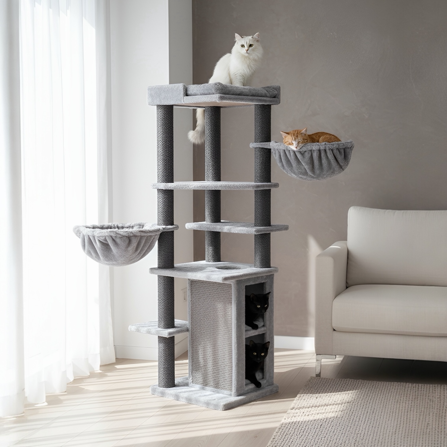 PETREBELS – CAT TREE RAMSES 158 – GREY – 9CM POST – WITH HAMMOCK