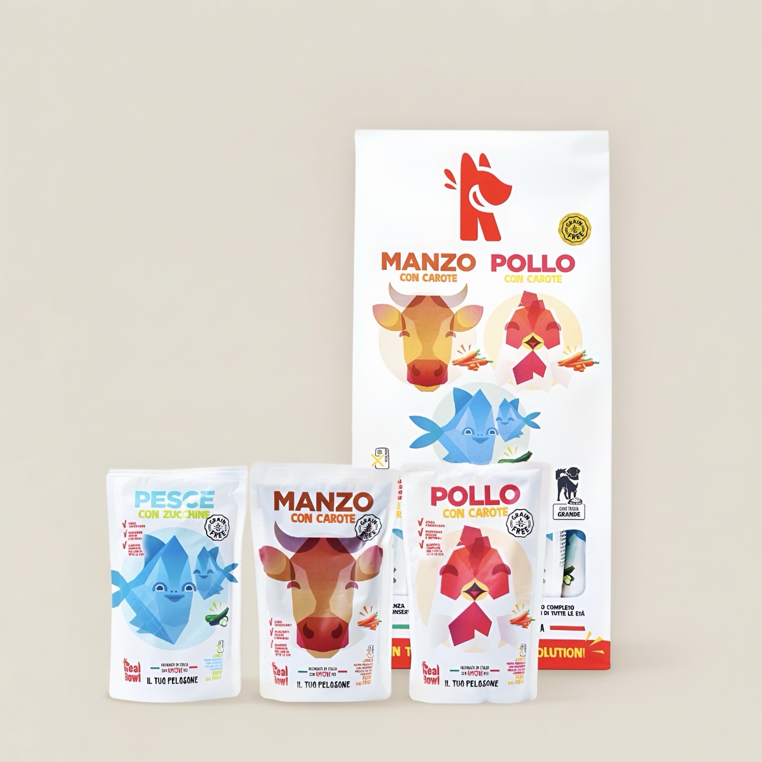 Real Bowl Grain Free Multipack – Complete Dog Food 150 g (7 Pouches: 2 Beef, 3 Chicken, 2 Fish)