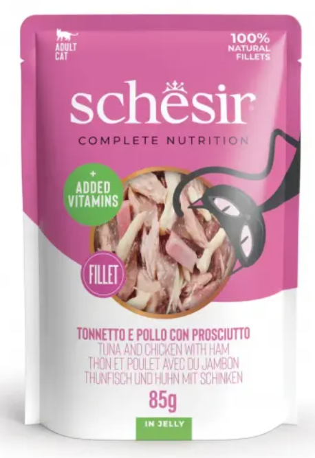 Schesir Wet Cat Food - Tuna and Chicken with Ham 85g pouch