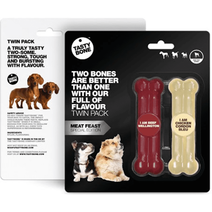 TastyBone Twin Pack Toy Meat Feast Bones Beef Wellington Chicken Gordon Bleu