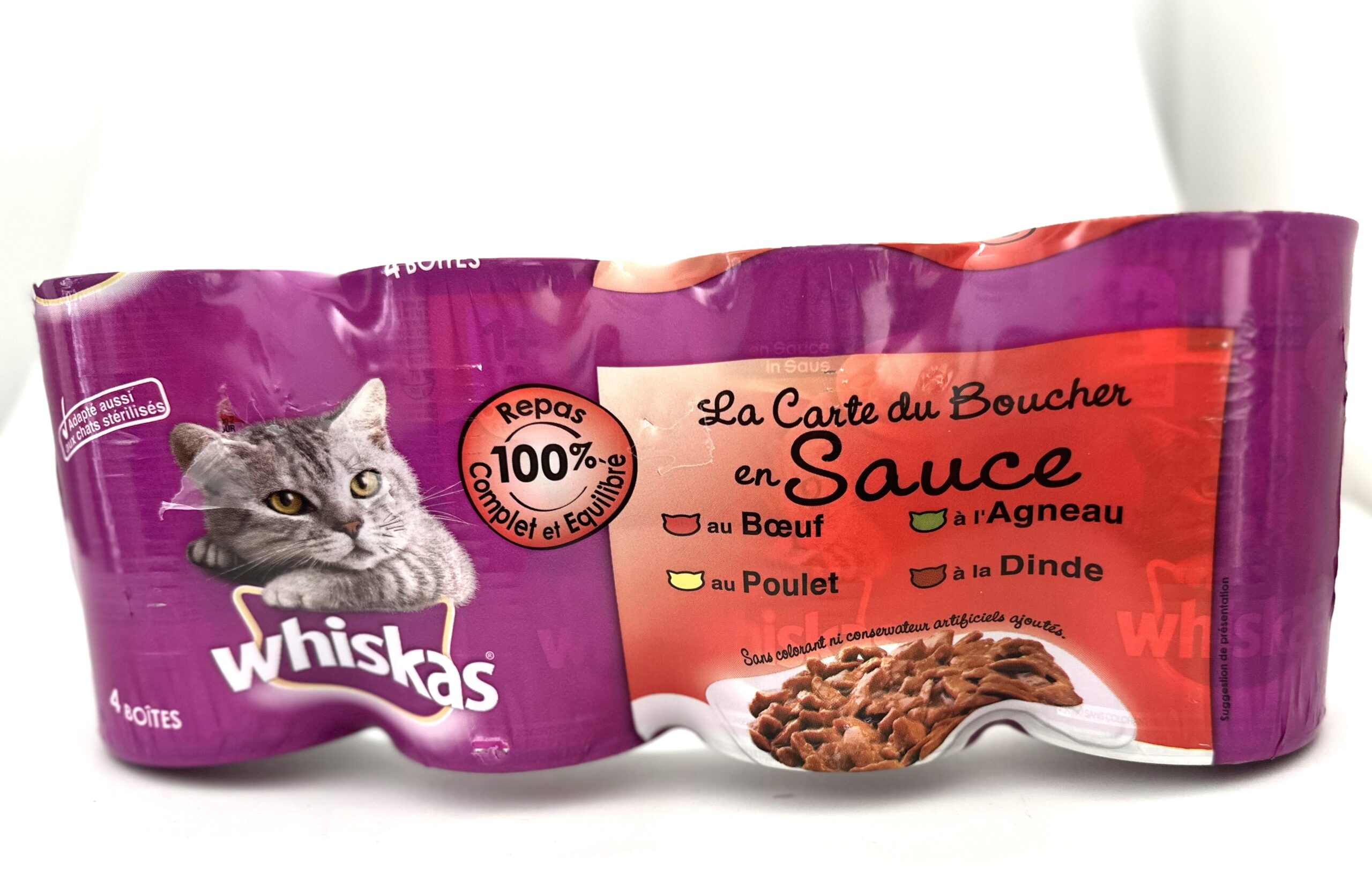 WHISKAS TIN (BEEF-CHICKEN-DUCK-LAMB)IN SAUCE 4X400GR - Pets For All